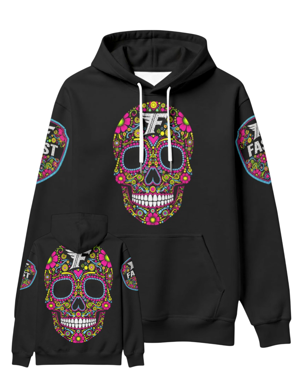 Honor the tradition of the streets with the "Calavera" Hoodie from Fast & Fit Streetwear. Featuring a striking, high-definition sugar skull design against a deep black backdrop, this hoodie is a masterpiece of urban style. Perfect for those who appreciate intricate art and a bold silhouette, the Calavera Hoodie brings a unique, symbolic edge to your everyday rotation.
